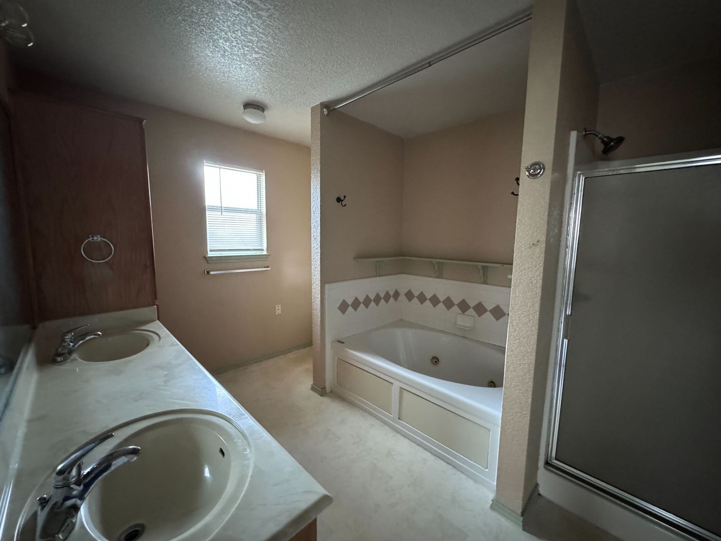 Absolutely gorgeous ! This home features four bedrooms, including the master suite complete with adjoining bath and jetted tub, separate shower, and marble countertops. Secondary bedrooms are very roomy with plenty of closet space, wood floors and share a full bath. Grand sized living room features a fireplace, wood floors, and french doors leading to the formal dining area. Step into the kitchen with fantastic tile floors and you find lots of space for another dining area, movable kitchen island, smooth top oven and microwave combination, and refrigerator. But wait - you have to check out the pantry and interior laundry area; it's fantastic! Outside you will enjoy an oversized covered patio with plenty of room for entertaining, a sprinkler system yard with gorgeous new grass, and privacy fence.