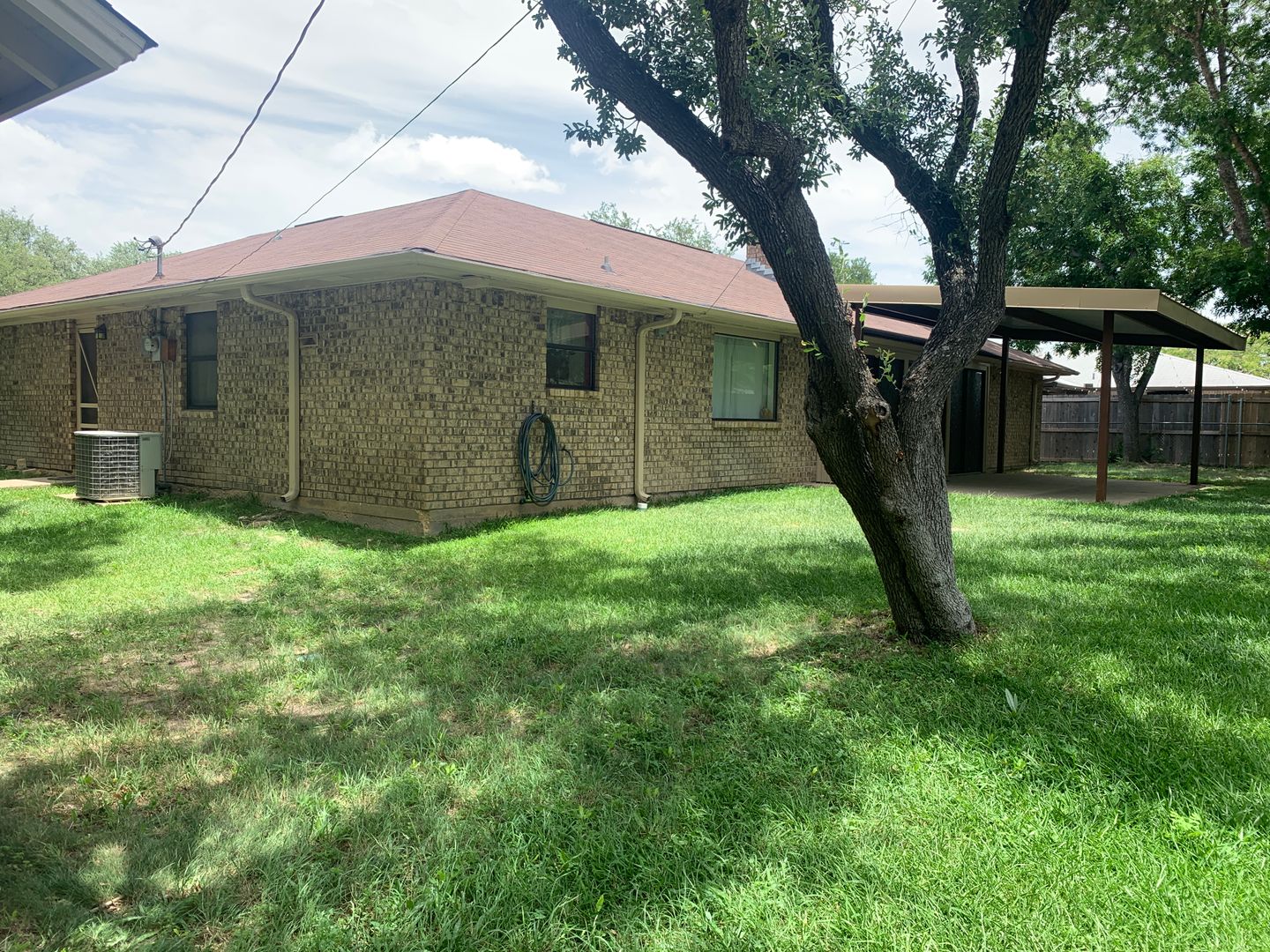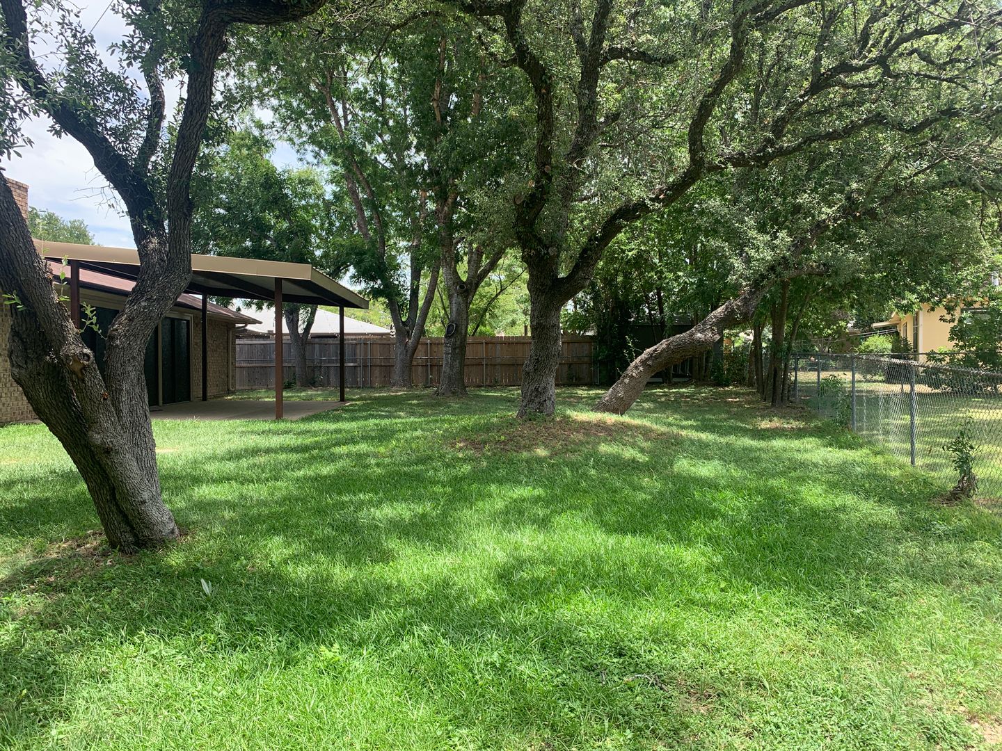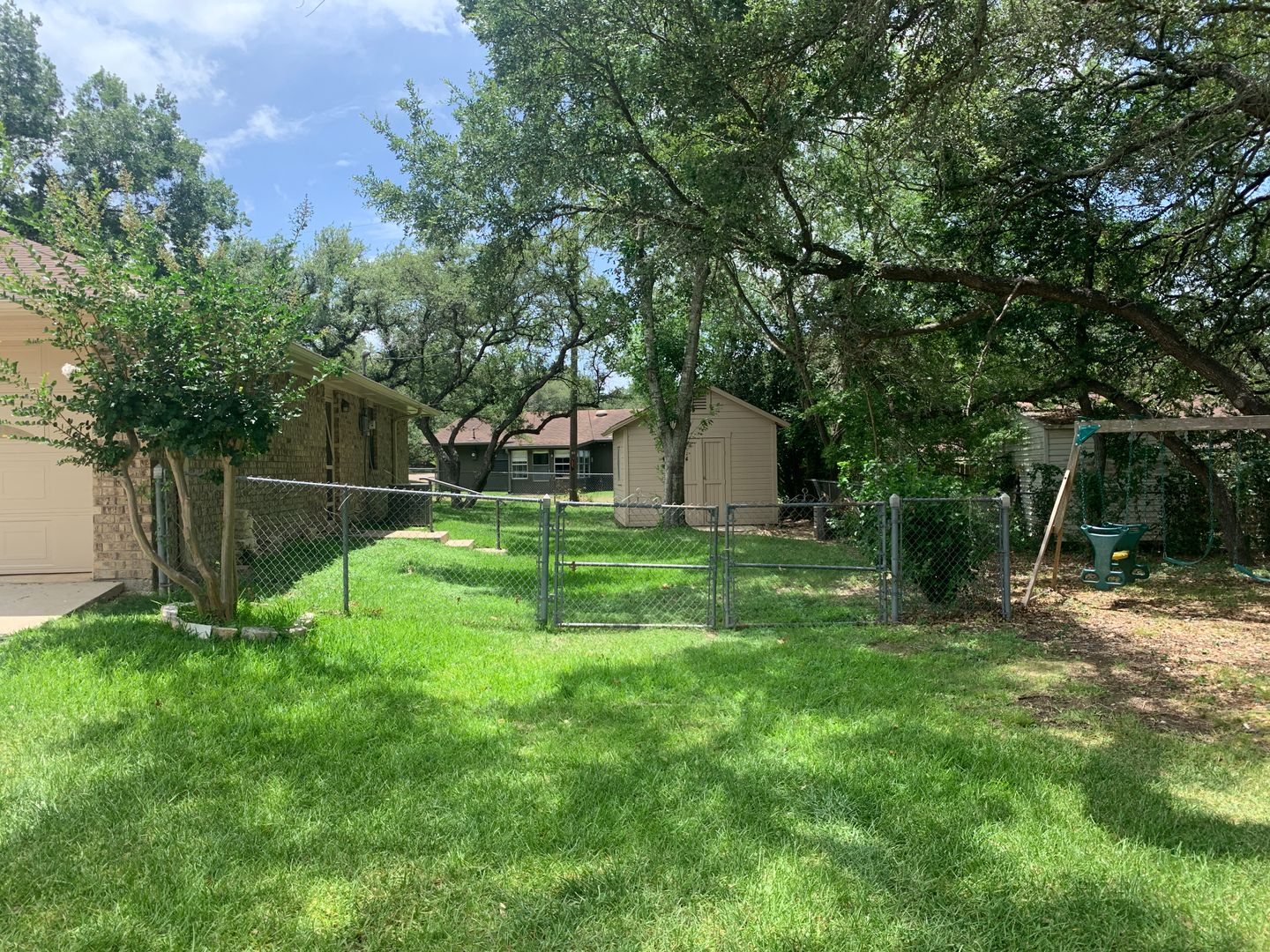Lush shaded yard - water softener, sprinkler system, and storage shed.